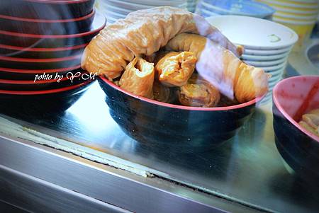 麵線選擇有四種:綜合、大腸、蚵仔以及清麵線,我沒很愛蚵仔,所以常點大腸麵線,大腸是另外滷好一鍋就放在清麵線旁,客人點時就會夾起鍋內的大腸,剪個幾塊放在碗中再加麵線,或有的客人也會單點大腸或小肚之類的小菜...我記得小菜份量很少,大約一個味碟的量吧!小菜中還有賣油豆腐,個人不愛店家的油豆腐,因為口感偏硬,我比較喜歡老兄牛肉麵的油豆腐,就是真的很嫩了!