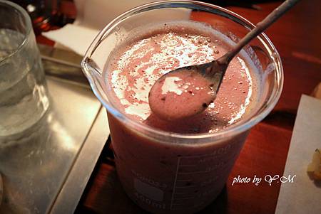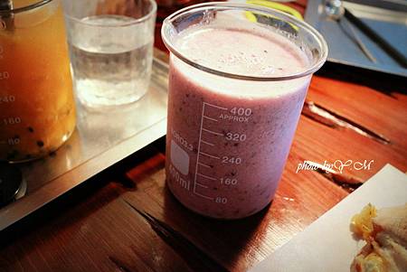 友人點的葡萄奇異果優格果汁,她說奇異果的味道較重,喝起來還不錯囉~~