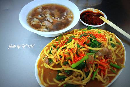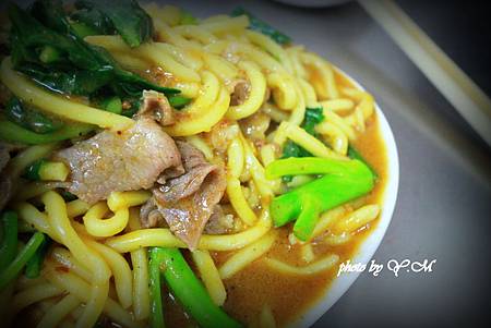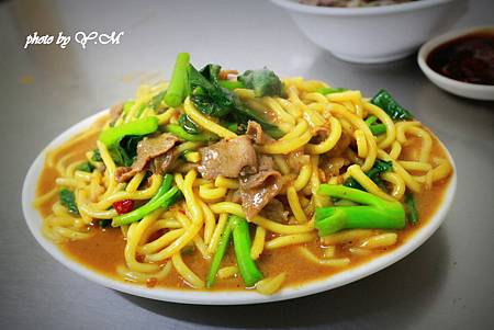 麵條一樣都採用粗麵條,每條麵條都被沙茶醬包裹住,所以每一口炒麵都非常入味,且麵條Q彈不軟爛,再加上羊肉、芥藍菜,這三樣根本就是沙茶的好朋友吧!