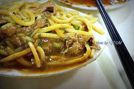 這裡的炒麵也是使用粗麵條,和沙茶味道也很合,牛肉很嫩,不過青菜少了點,但整體還算不錯!不過對我們來說有個小缺點,就是沒加辣椒(因為我們是無辣不歡的人啊!)雖然店家告知沙茶有些微辣,但相信愛吃辣的人應該覺得沙茶的辣度是不夠的吧XD
