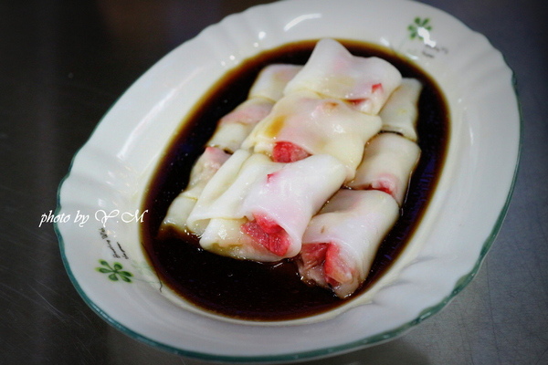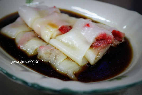 叉燒腸粉:很快就上桌了,皮看起來頗Q彈,感覺腸粉皮很薄,都可透光了!不知嚐起來是否也是帶有Q彈的口感呢?