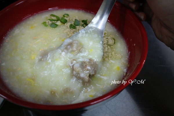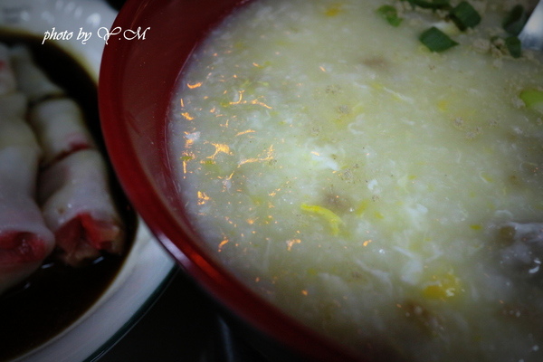 粥吃起來湯頭還不錯,粥已經煮到看不到飯粒那種,牛肉則是用牛絞肉稍微醃過後加入粥中煮的!