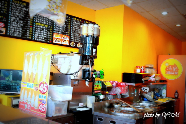 店家的霜淇淋機很特別,和一般在超商看起來不同,查覺到了嗎?上面是巧克力粉等加在霜淇淋上的...