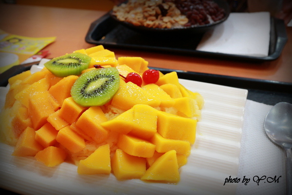 芒果很新鮮,一看就知道是現點現切的,我只能說新鮮的芒果+濃郁牛奶味的雪花冰=讚![]()