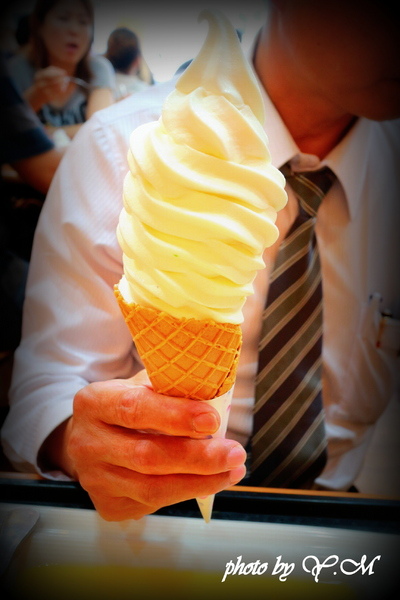 額外送的霜淇淋,我們選了原味...一送上來,我嚇了一跳...好大一支啊!(這裡的份量真的都很大)