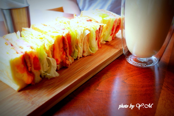 貳參三明治:吃起來有花生醬的味道(廢話,人家菜單上就有寫加花生醬了!),趁熱吃,整體味道還行,建議肉可以再厚一點,它薄到讓我幾乎忘了它的存在啦!
