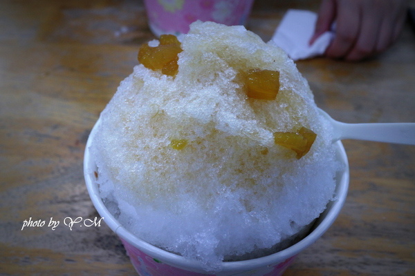 我的則是綜合冰,也是45元,從外觀看來要不是我同學的有加牛奶,我們實在很難去判別哪個是哪個了!也和阿忠一樣,淋了鳳梨糖水,不過正宗的鳳梨切得較大塊此!就糖水來說,我仍偏好阿忠的,阿忠的香氣足,吃起來還帶了點酸甜,和冰超和的!但正宗的鳳梨糖水沒什麼香氣,也沒什麼酸味,只有在吃到鳳梨時才有感覺微酸!