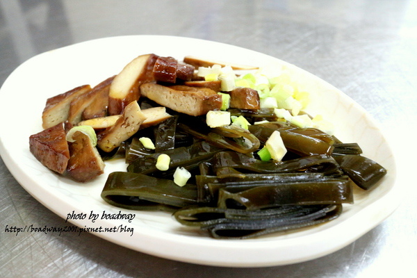 今日只有我一人用餐,所以只簡單點了二片海帶及一份豆干(其實店家的蔥花也很特別,不是用新鮮的蔥花,而是將蔥花稍微陰乾過,雖然如此,卻仍保有蔥花該有的嗆辣味)