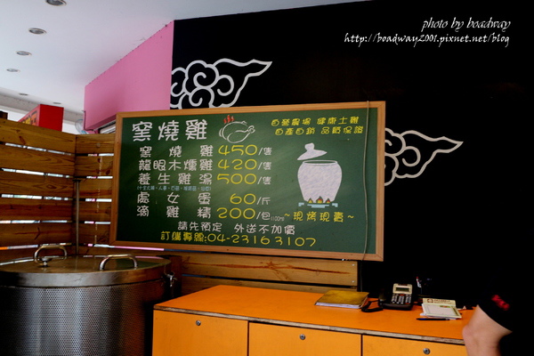 進入店內後,老闆及老闆娘很熱情的招呼,而老闆也很仔細的跟我介紹著...不過因為我一直被這窯燒雞的香味吸引著,實在很難很專心的聽XD(但大部份我還是有認真聽哦)而店內所使用的窯烤爐就是照片上所示的!感覺好專業啊!我問老闆目錄上怎麼沒有大雞腿的標價,老闆說因為是新產品,過幾天價目表會重新做過。
