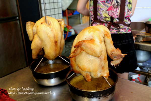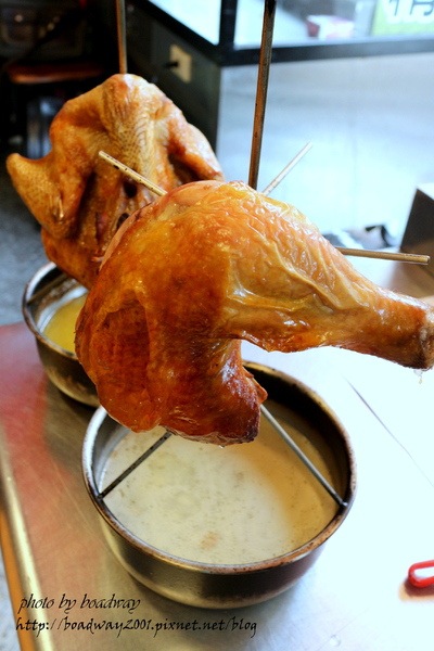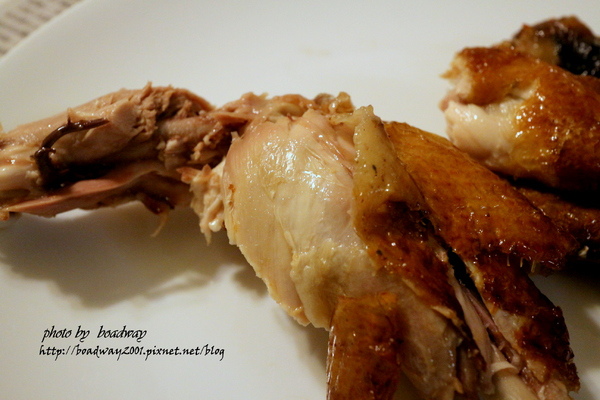 這是已醃製好36小時且已川燙好的土雞,因為還尚未窯烤,所以土雞的皮膚還是白白的~~(好像白斬雞的樣子)