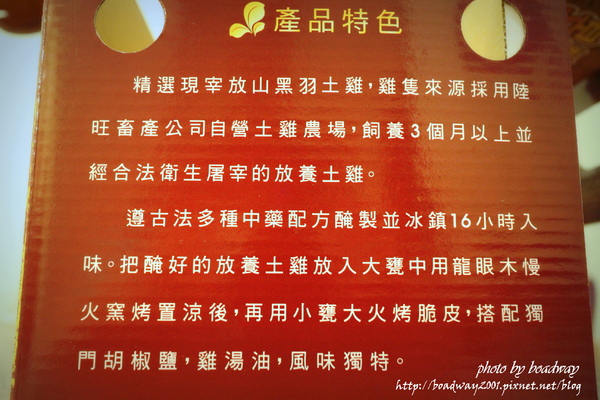 【昱品窯燒雞】採用的雞隻皆是來自好山好水的埔里,是30多年擁有豐富養雞經驗的知名「雞王土雞運銷公司」自養的土雞,來源有保障肉質佳,無藥物殘留;【昱品窯燒雞】目前的主推產品有「窯燒雞」、「窯燒骨腿」、「滴雞精」及「醺雞」,樣樣皆廣受消費者喜愛。