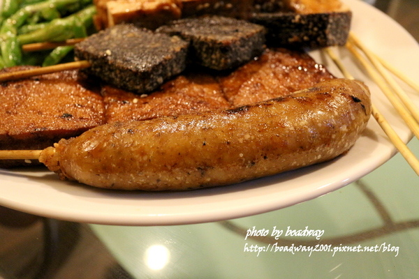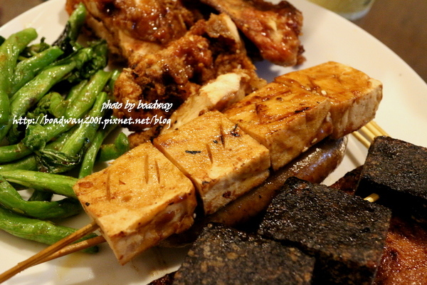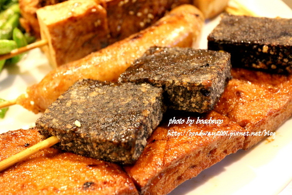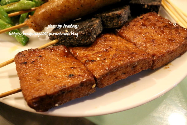 手工豆干:比起一般的豆干來說,它厚上許多,也比較大片,這豆干店家是採先炸後烤的方式,再刷上烤肉醬,還算有入味,豆干搭烤肉醬還蠻合的,吃起來還不錯!