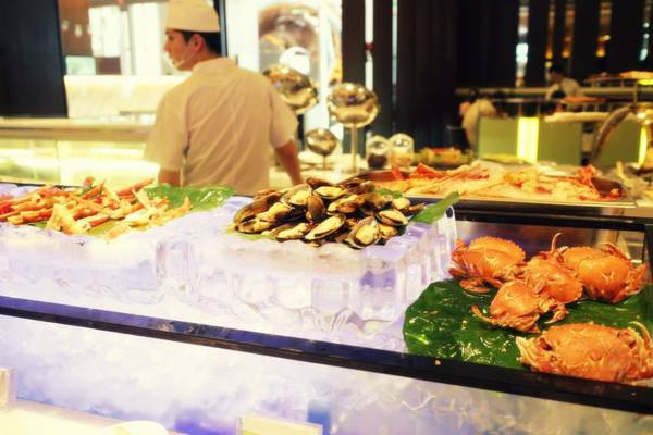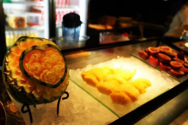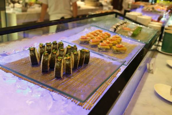 不負責任心得講評:天婦羅區--深得我家stacy媽的喜愛,stacy媽覺得炸粉調得很不錯,剛炸起來好吃!因為我沒吃這區,無法講評。港式區--港點類很多是冷凍的,所以我也沒吃,但烤乳豬皮很脆,不錯,只可惜有点小油;墨西哥食物區--我姊夫覺得有点辣,味道還行;現切牛排區--當選為今日最大敗點,5人都覺得不好吃!生魚片區--鮮度ok,但國賓八方燴更勝一籌,白灼蝦還不錯,有新鮮;手捲區--可以告訴師傅你想包啥,服務很不錯,味道普普;飲料區--新鮮果汁,推檸檬汁(因為是現壓的);水果區--種類有点少囉~;甜點區:蛋糕口味普通;冰淇淋區--有哈根達司及莫彼凡可選;還有麵包區--沒試,所以無法評論囉~