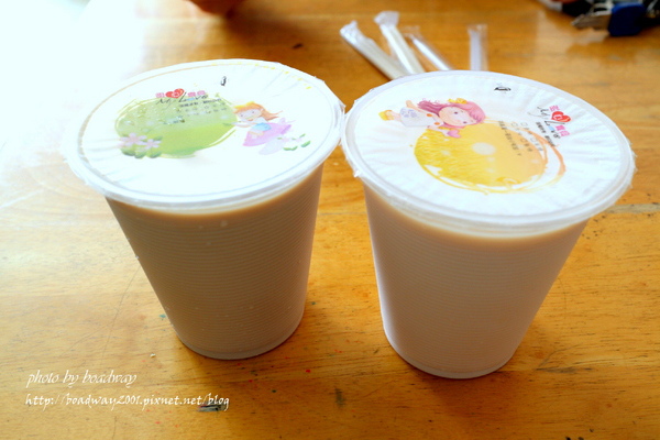 話說店裡只有老板及老板娘二人在忙著,所以要吃什麼要自己寫下來後交給老板娘,飲料部份冰的在冰箱中可自取,不過我看了半天實在有點分不出哪杯是奶綠啊!(和豆漿的顏色好像