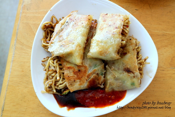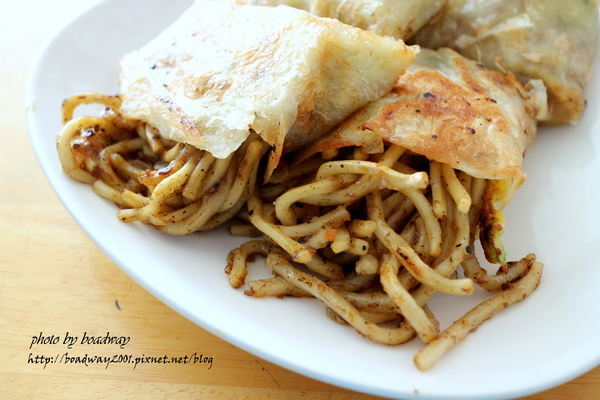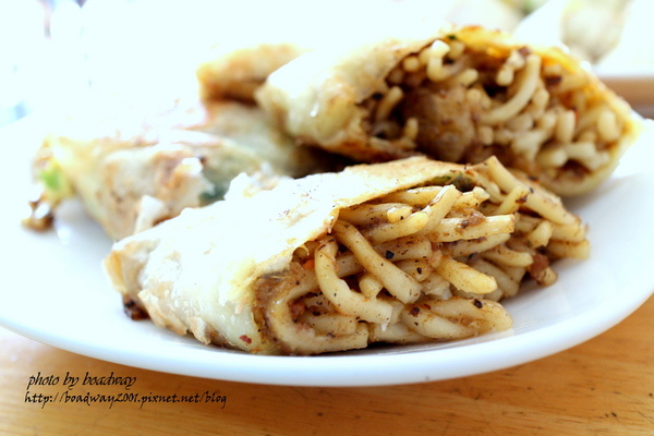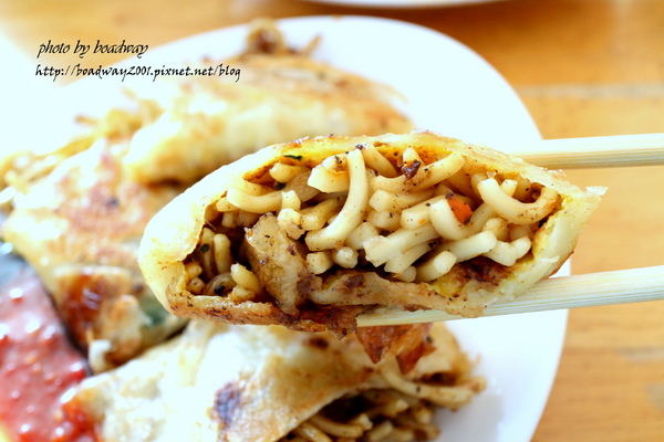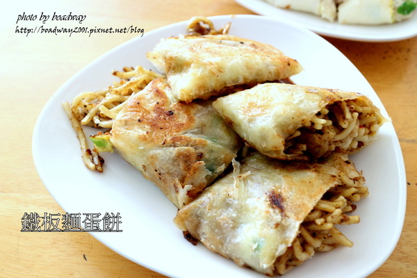 鐵板麵蛋餅:也是很大一份,蛋餅的餅皮煎的恰恰的(台語),吃起來微酥,鐵板麵部份我們則是選擇了黑楜椒口味...