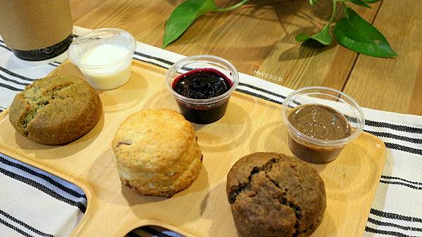請店家幫我烤好的司康,可以再另選一種沾醬,我選了最安全及百搭的奶油!
