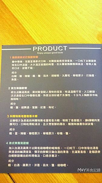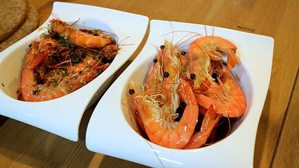 泰式柬喬莞甜蝦:這口味似乎較少見,看看成份,裡面還加了蘋果汁、白酒及小黃瓜等等,好特別~