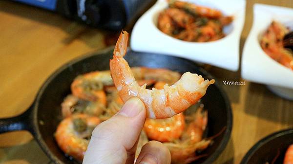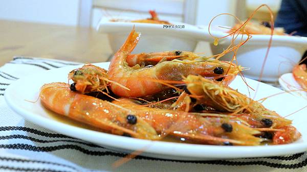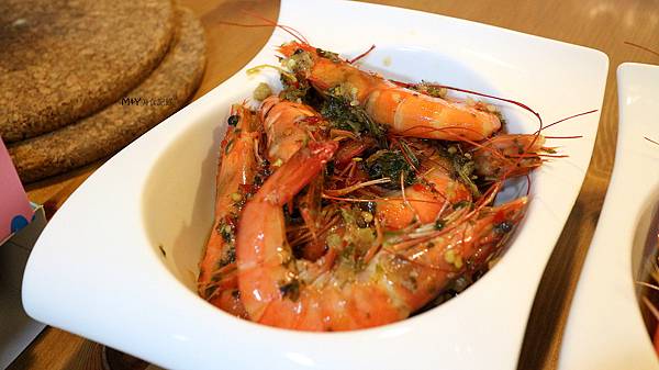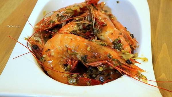 泰式柬喬莞甜蝦:吃起來有自然的甜味,雖然是重口味,卻不失清爽~另外雖然有加了綠咖哩,但大家吃不太出來,整體來說這道的風評還不錯!