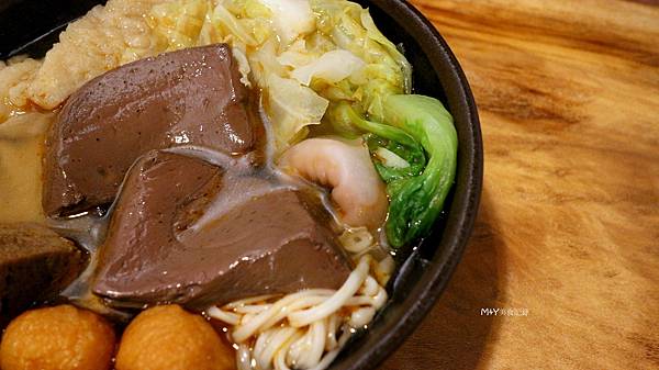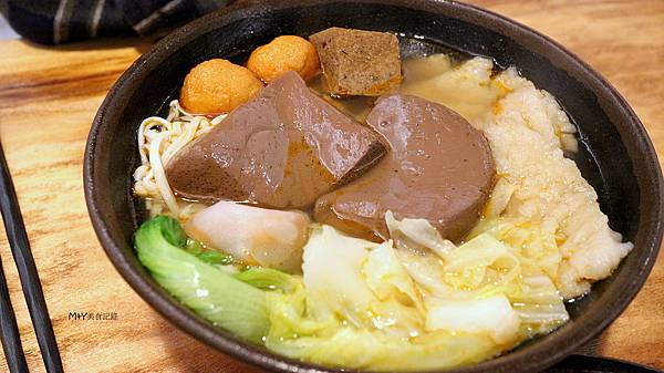 麻辣系列:內容十分豐富,有鴨血、凍豆腐、黃金魚蛋、魚餃、天婦羅、豬肉片、高麗菜及大陸妹,麵則選了銘燒麵!