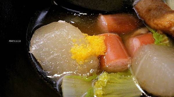 鴨血十分入味又嫩口,好吃!天婦蘿煮的軟Q,似乎也可吃到有牛蒡的存在!還不錯!
