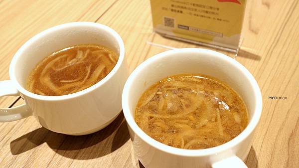 點好了餐,趕去盛一杯湯來喝喝吧!洋蔥湯喝起來清甜,蕭老大還問我這湯有加糖嗎?要不然怎麼那麼甜XD