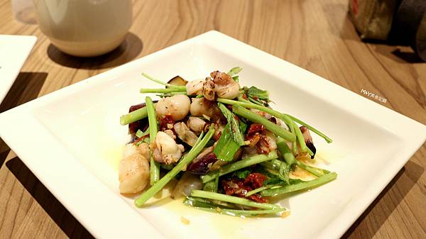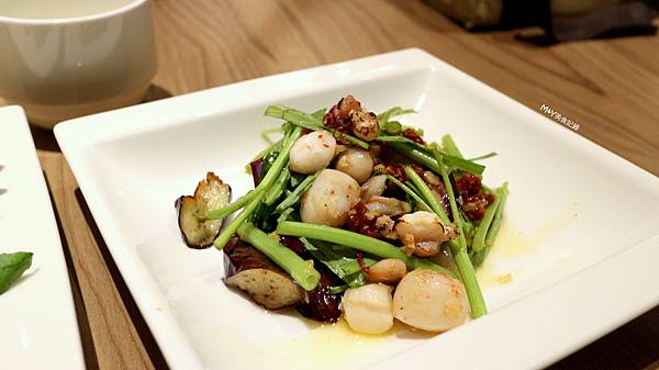 除了章魚之外,還加了茄子及蛤蜊肉,章魚及蛤蜊肉的嚼勁加上茄子的軟嫩與爽脆的空心菜,再帶點微辣微酸的調味,真的好好吃!