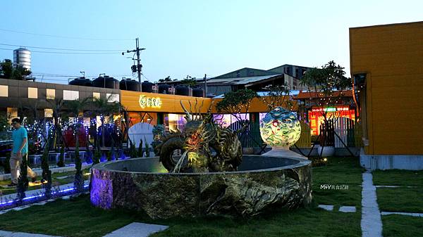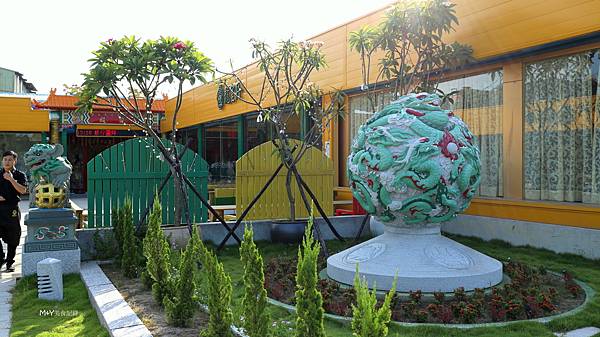 餐廳前還有小花園,還有噴水池,龍皇丹似乎標記就是龍,因為到處可看到這樣的標記哦!