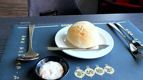 圓法麵包佐時蔬鮪魚醬(588套餐):麵包熱熱的很不錯,吃起來頗有嚼勁,可以感受到麵粉的香氣......
