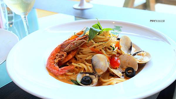 這的茄汁算是九層塔味較為鮮明的!海鮮很新鮮,熟度拿捏得宜,麵條也很Q彈,但我還是希望可以吃到是白醬啊!