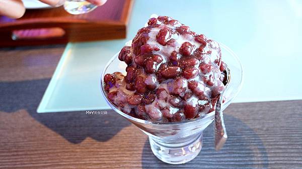 再淋上店家特別調製的糖水,有淡淡的檸檬香氣,紅豆煮的很漂亮,外型飽滿,豆餡吃起來綿密,只可惜對我來說很甜,所以吃沒幾口我就投降了XD