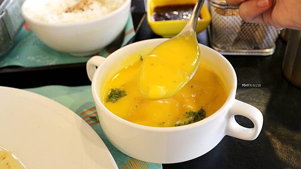 濃湯和沙拉份量不少,雖然只加了59元,南瓜濃湯非常的濃郁好喝,喝到的南瓜甜味~