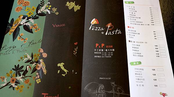 P&P悠活館店面很大,附近還算好停車,從招牌就知道是主打義大利麵和PIZZA。