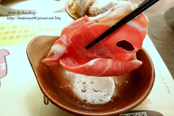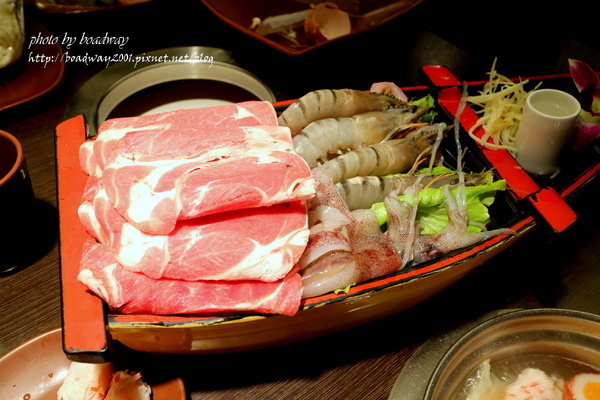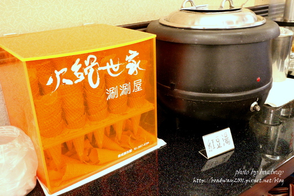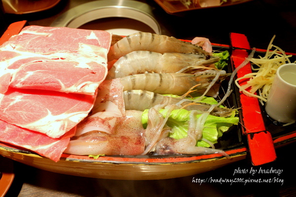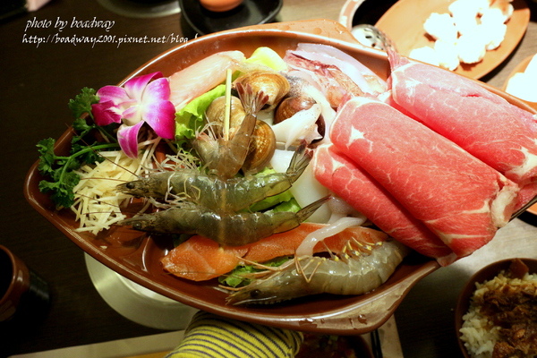 我和老爺點的極品霸王蝦鍋,有附肉片,牛、羊、豬、 雞可任選一種,我們選了羊肉片。