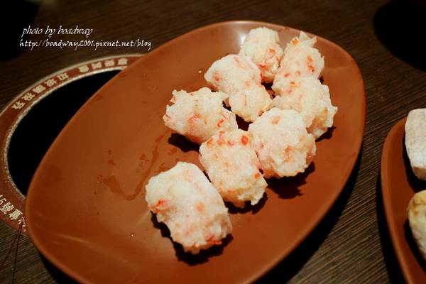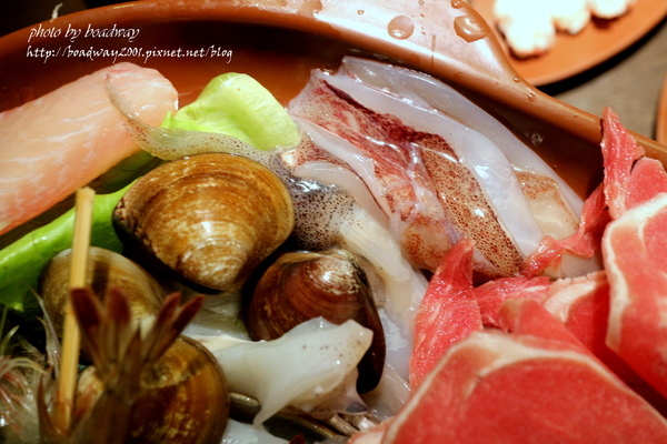 這家火鍋世家比較特別的地方在於每鍋都會額外贈送小食材,有活跳蝦、雕魚片、肉片、蛤蜊可以四選一,我和友人都選了活跳蝦。
